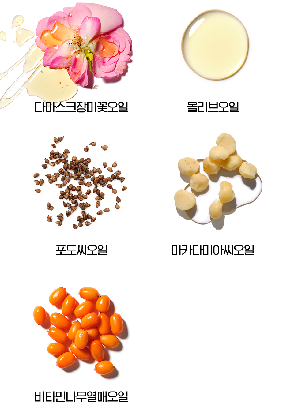 마카다미아씨오일, 살구씨오일, 메도우폼씨오일,
