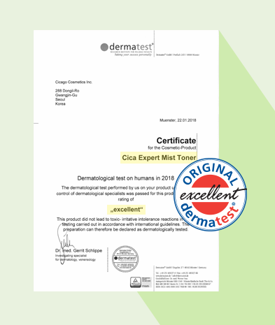 독일 더마테스트(dermatest)에서 엑설런트 등급을 받았습니다.