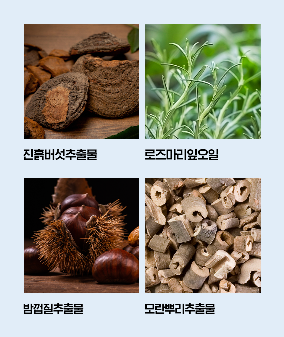 판테놀, 로즈마리잎오일, 밤껍질추출물,