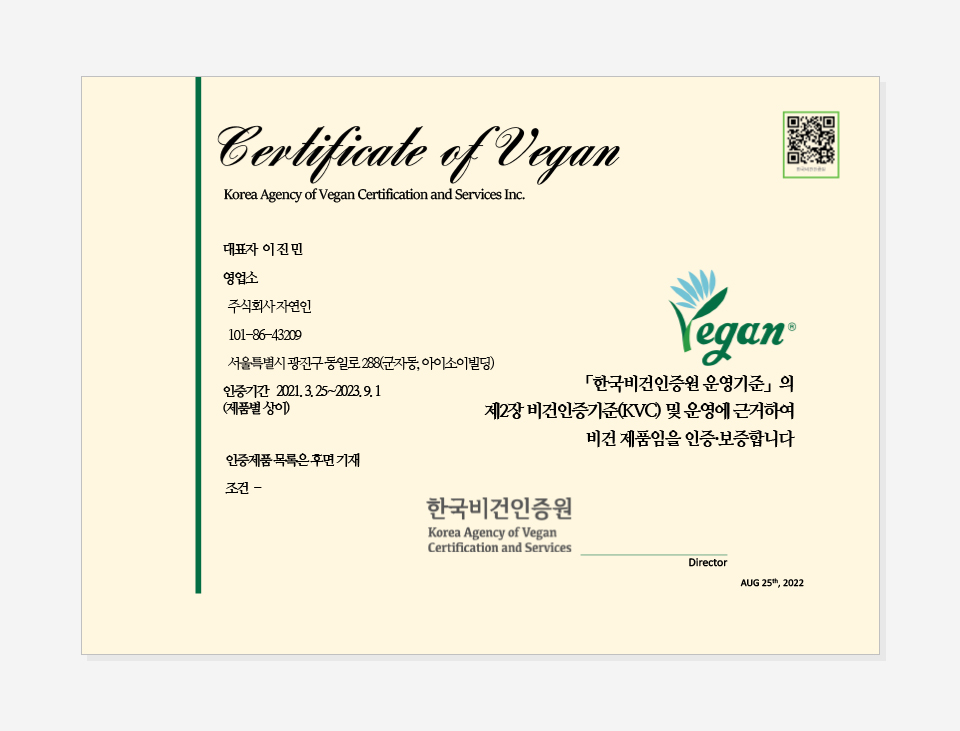 국내 비건인증기관 1호, '한국비건인증원' 인증 완료