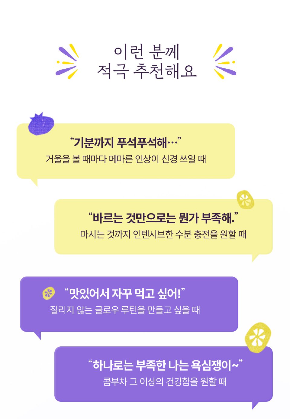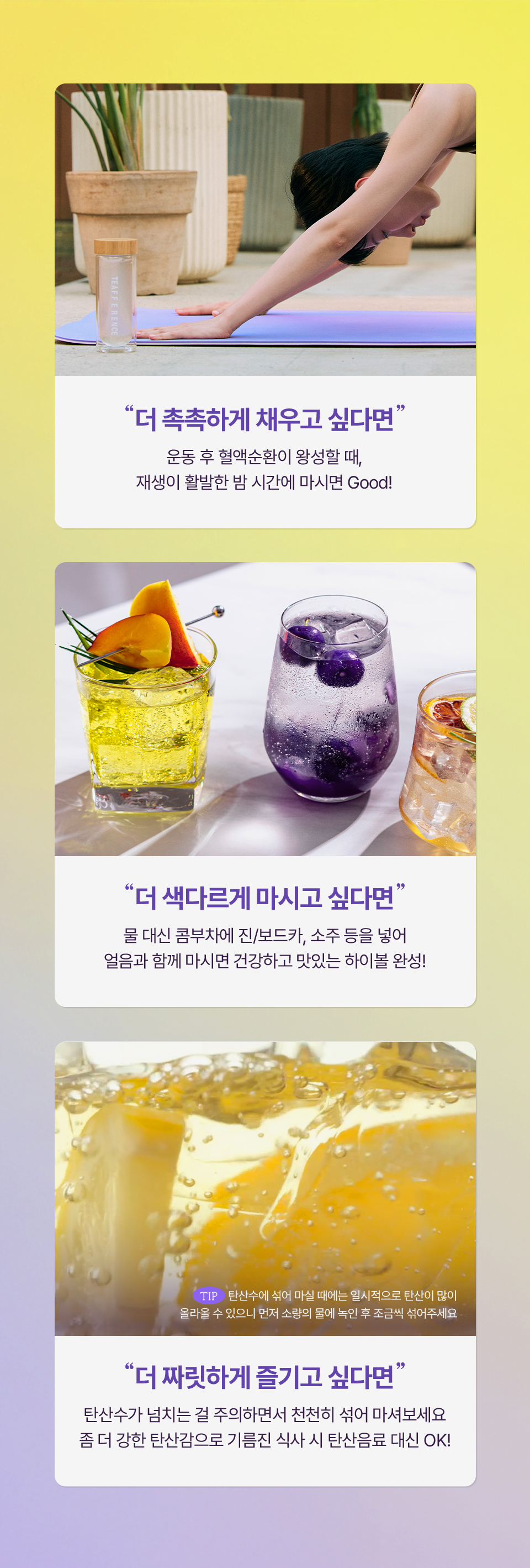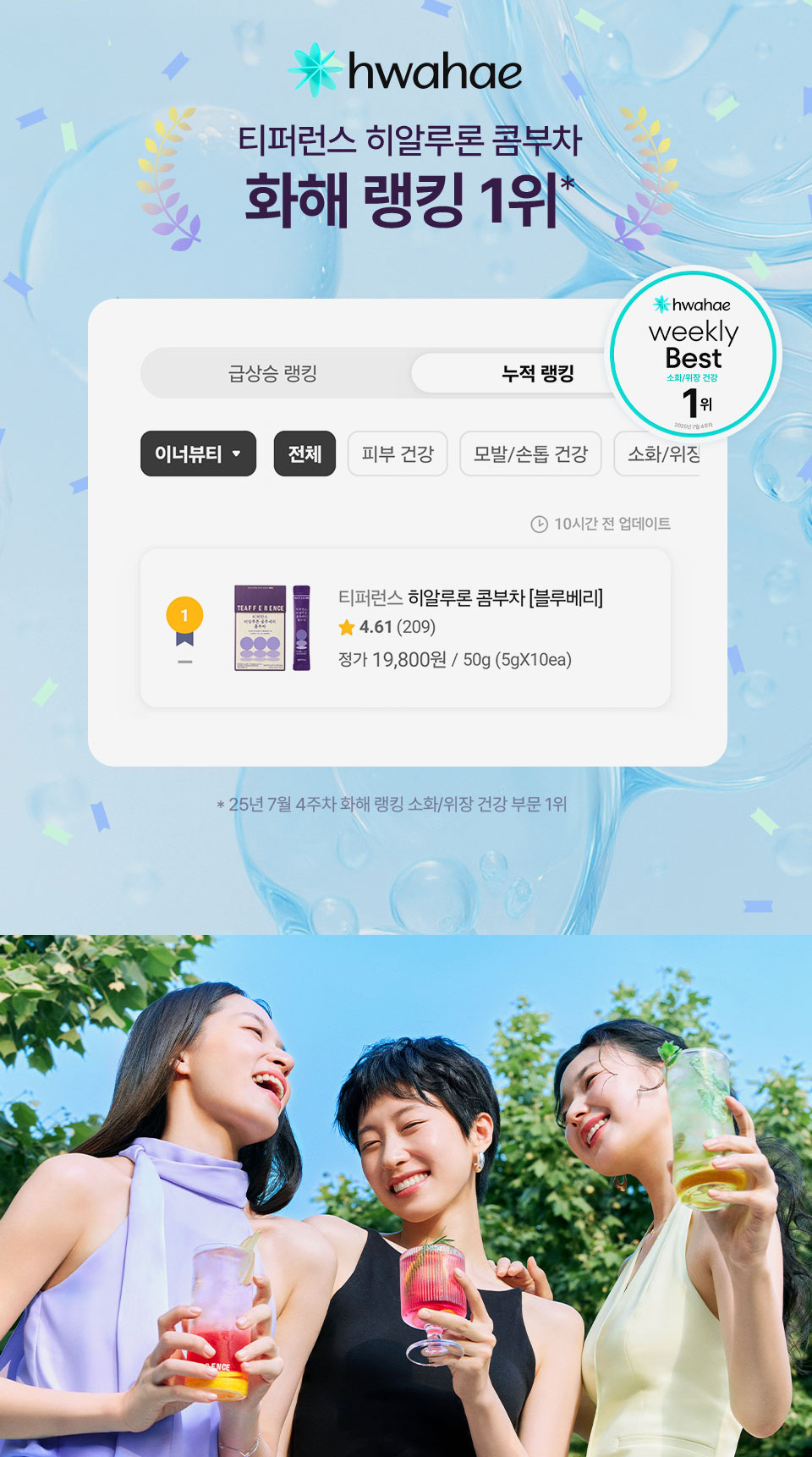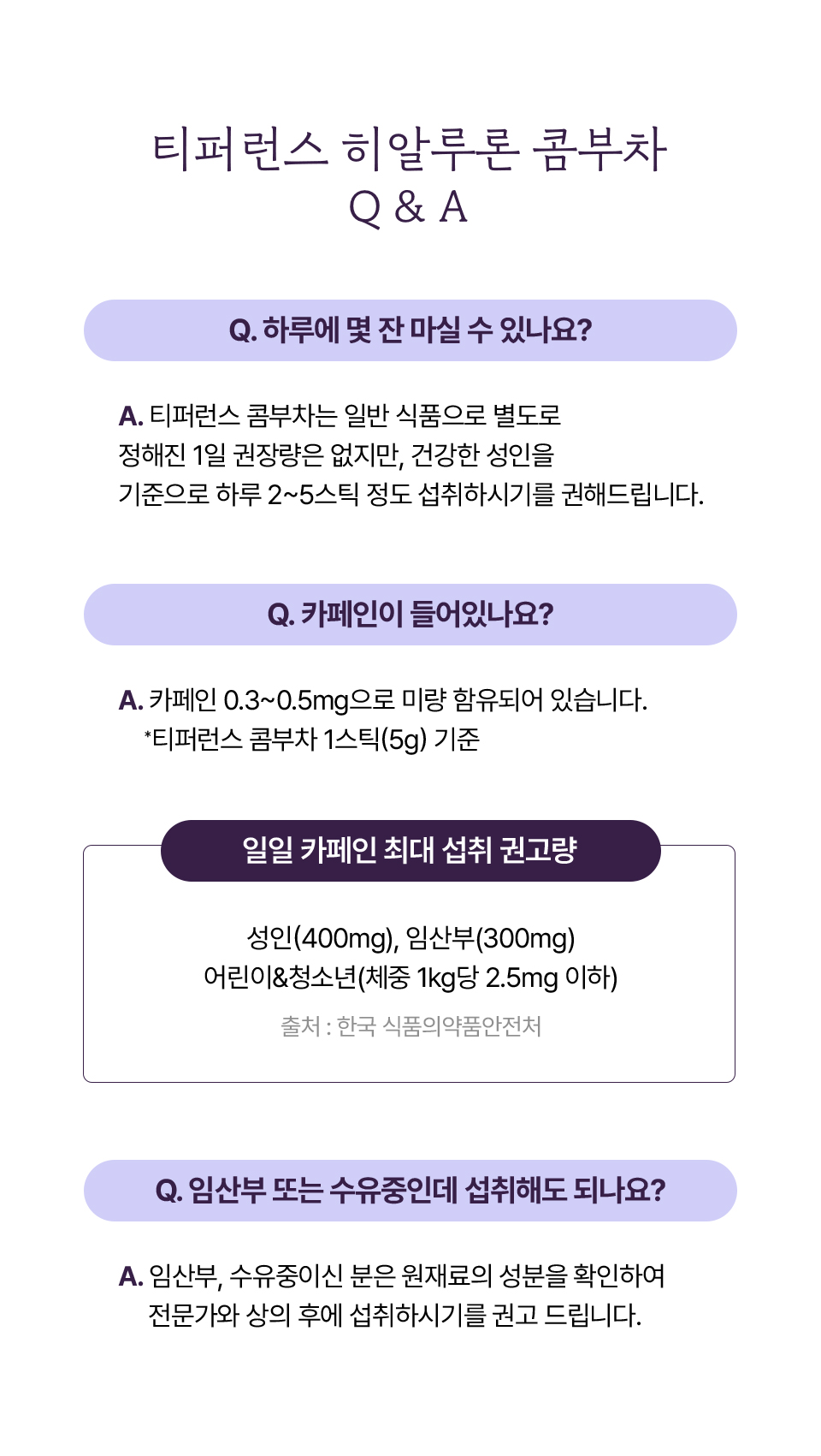 [히알루론 블루베리 콤부차] 무수구연산, 탄산수소나트륨, 콤부차분말[홍차콤부차베이스{홍차추출액(홍차/스리랑카산)}, 덱스트린], 에리스리톨(감미료), 블루베리농축분말{블루베리주스농축액(미국산), 덱스트린, 아라비아검}, 향료(블루베리향), 프락토올리고당, 난소화성말토덱스트린, 말토덱스트린, 비타민C(영국산), 수크랄로스(감미료), 우바홍차추출분말[홍차추출농축액(우바홍차/스리랑카산), 덱스트린], 이산화규소, 히알루론산, 덱스트린, 퍼플티추출분말[홍차추출농축액{홍차(케냐산)}, 덱스트린], 19종혼합유산균알파-2000 [우유, 대두 함유]<br> [히알루론 레몬 콤부차] 무수구연산, 탄산수소나트륨, 콤부차분말[홍차콤부차베이스{홍차추출액(홍차/스리랑카산), 덱스트린, 프락토올리고당, 유산균(캐나다산), 효모}, 덱스트린], 에리스리톨(감미료), 레몬과즙분말HCS-5946[덱스트린, 레몬과즙(레몬/미국산), 아라비아검, 구연산, 향료(레몬라임향)], 레몬향분말H[덱스트린, 혼합제제{레몬향/트리아세틴, 향료, 주정}, 아라비아검], 프락토올리고당, 난소화성말토덱스트린, 말토덱스트린, 비타민C(영국산), 수크랄로스(감미료), 우바홍차추출분말[홍차추출농축액(우바홍차/스리랑카산), 덱스트린], 퍼플티추출분말[홍차추출농축액{홍차(케냐산)}, 덱스트린], 이산화규소, 히알루론산, 덱스트린, 19종혼합유산균알파-2000 [우유, 대두 함유]